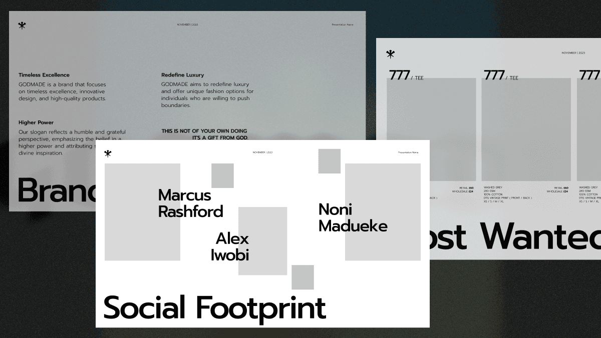 Once the structure and content were set, the GODMADE identity was cohesively applied to form the final pitch deck.